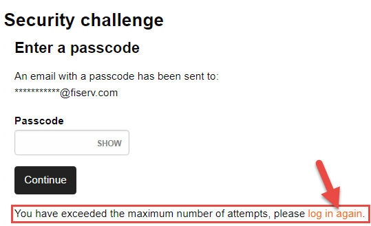 - If you request a new passcode more than two times, the system locks your account, signs you out, and displays the "You have exceeded the maximum number of attempts, please